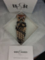 A Window to Ayrshire and Ayrshire celtic blackknife pendant setAn Ayrshire blackknife featuring your choice of faceted gem. Provided with an elegant, custom, charred Scots Pine scented display stand which holds the Ayrshire Window above the horizontal blackknife pendant mount. Also provided is a customisable text plaque to compose a meaningful sentiment to the bearer or the stone info.