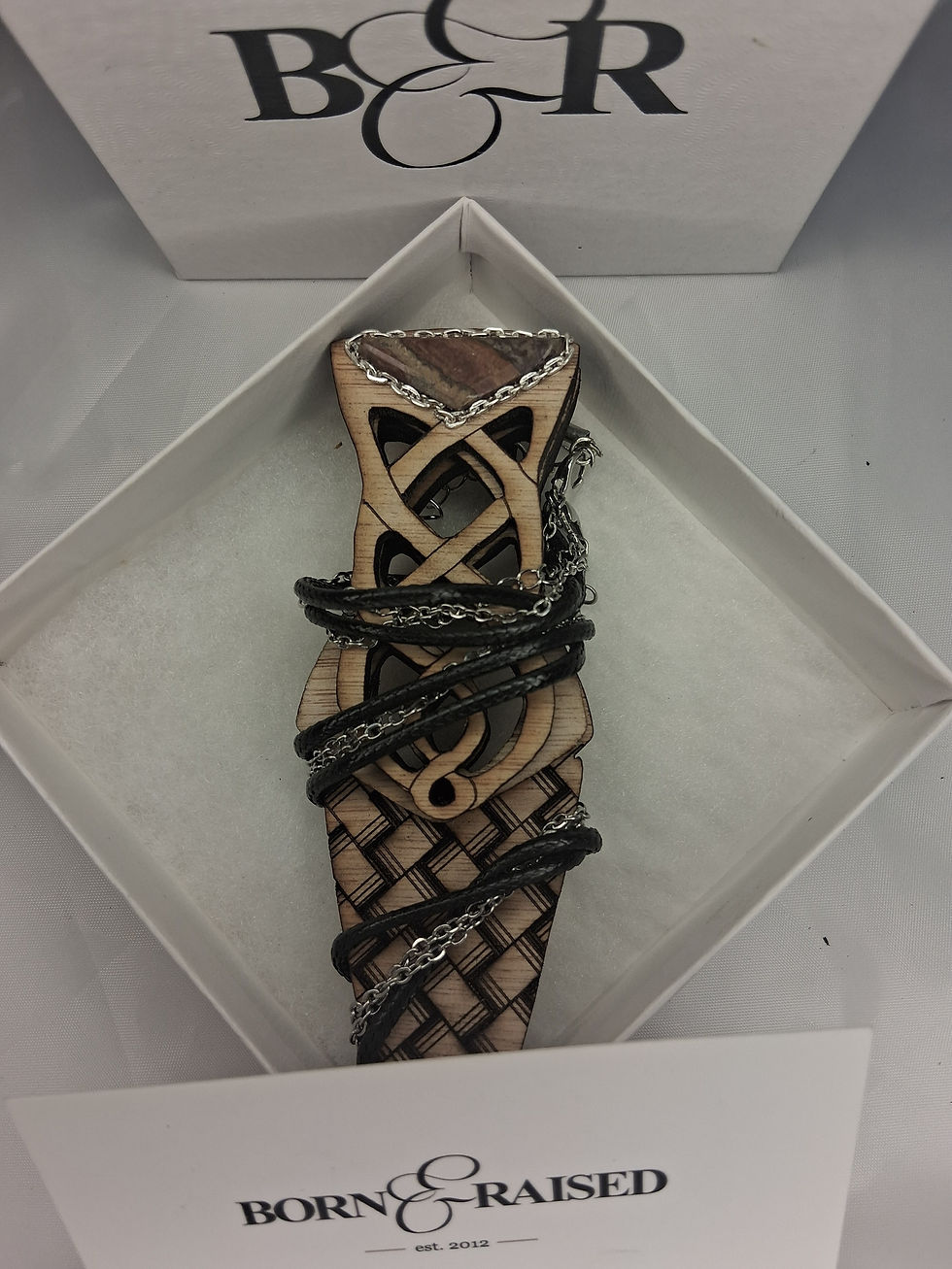 A Window to the heart of Ayrshire and Ayrshire blackknife pendant set. Elegant, charred scots pine scented display frame and customizable text plaque